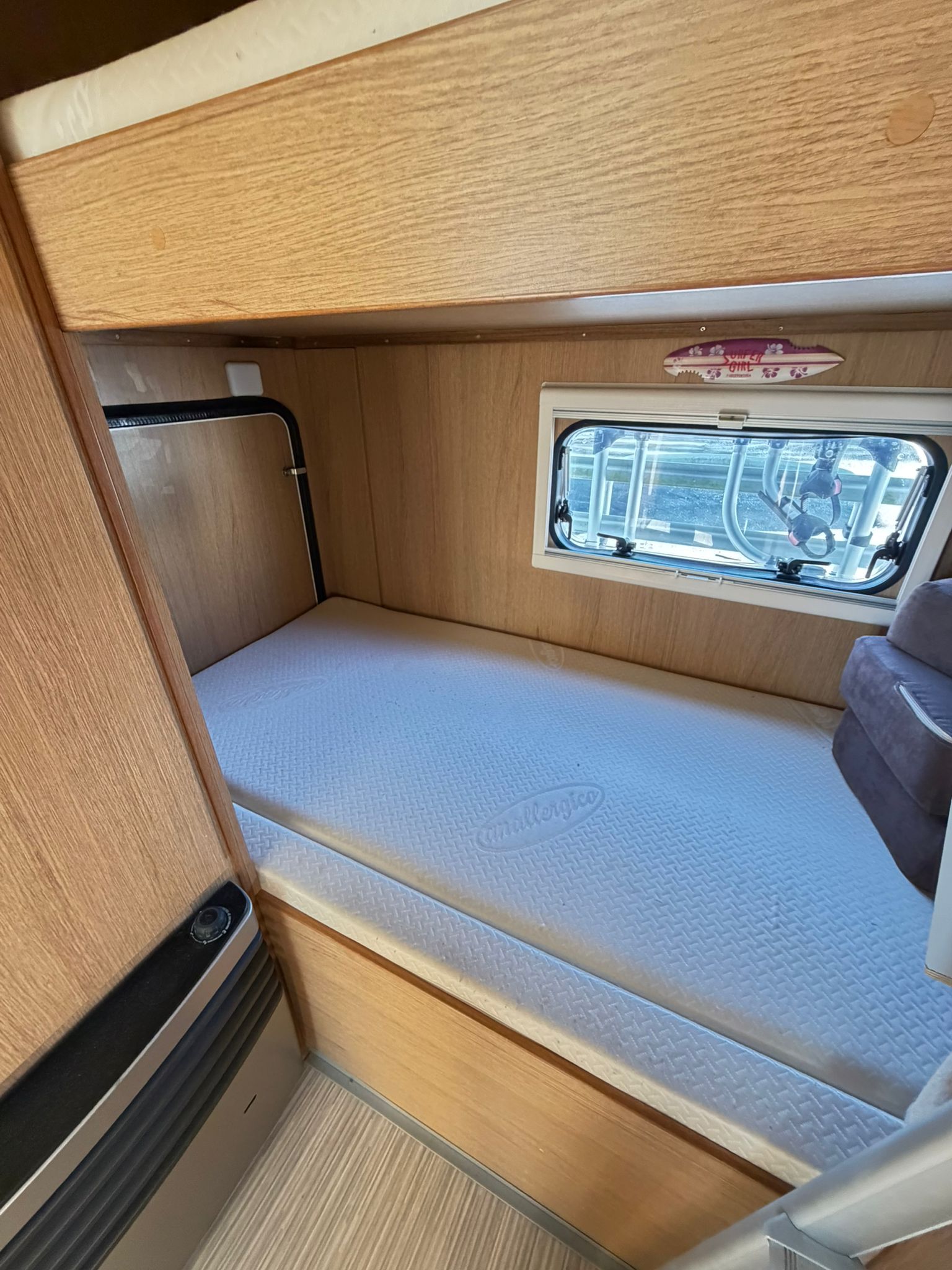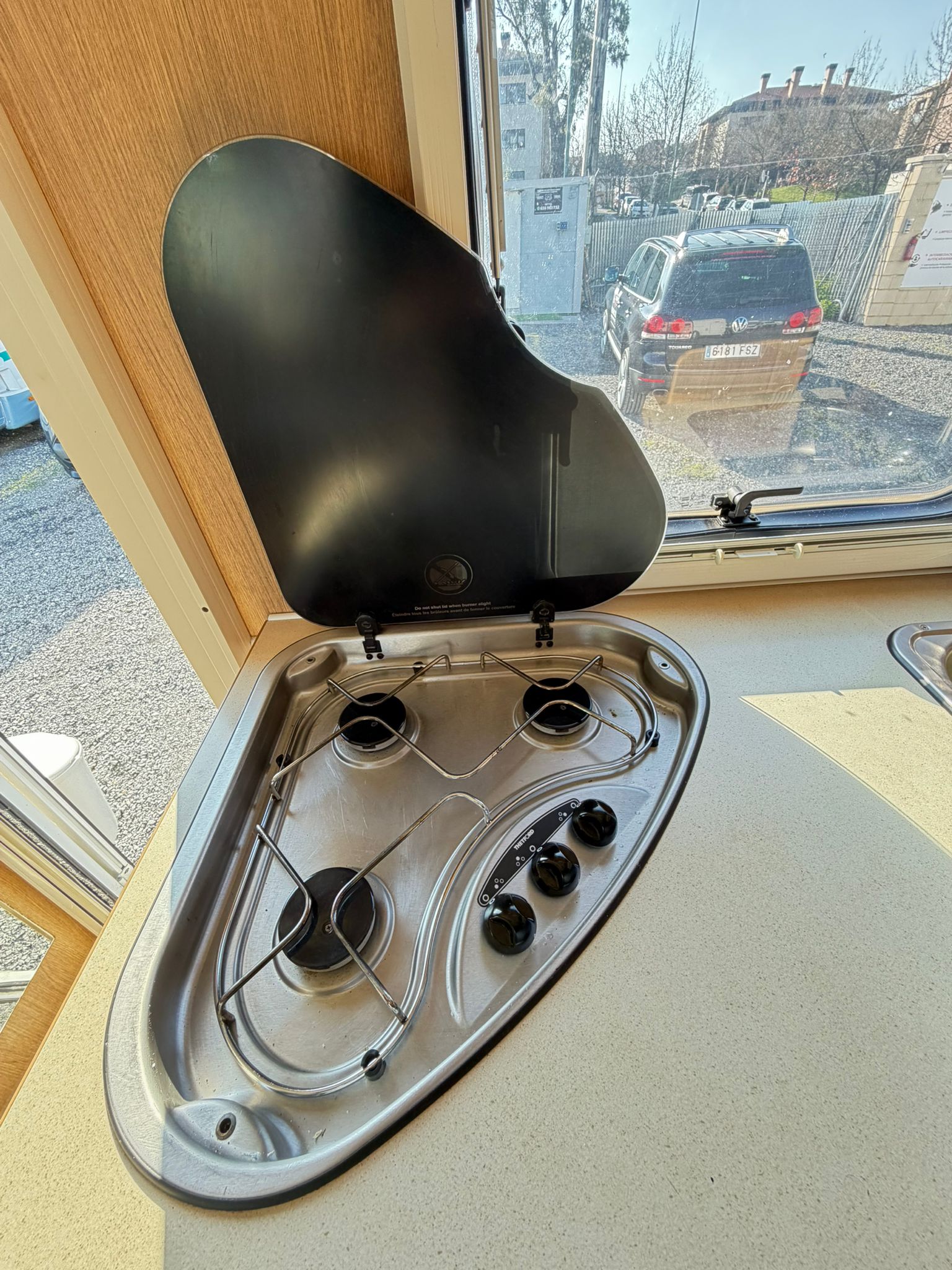 equipamiento: calefacción y agua caliente truma oscurecedores y mosquiteras en todas las ventanas y claraboyas, amplio garaje trasero, dos bombonas de butano, toldo exterior, portabicicletas, cámara trasera.
