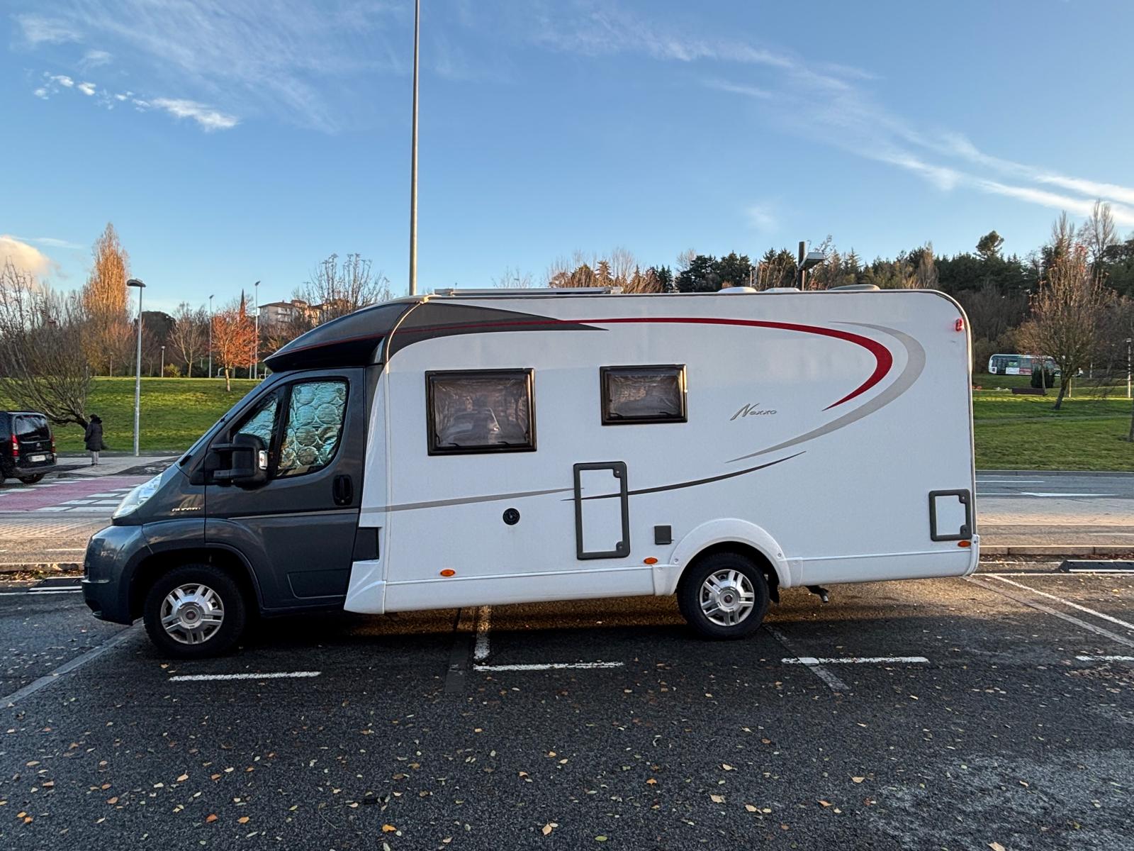 Se vende autocaravana Burstner Nexxo T660 sobre Fiat Ducato, año 2009, con solo 73.200 km reales. Único propietario, siempre guardada en garaje cerrado y mantenida con mucho cuidado. Mecánica y vivienda Totalmente revisada (mecánica y habitáculo) Correa de distribución hecha con factura Aceites y filtros recién cambiados.